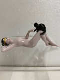 【詳細】昭和レトロ☆女性と黒ねこ☆陶器製☆裸婦 ポーズ 人形 長さ 11.0cm 黒猫 ヌード 当時物 現状 詳細不明