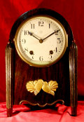 【詳細】精巧舎 木製置時計、振り子つき手巻き時計 現状販売 文字盤のガラス部分が弱く仮に取り付けて有ります。時計は動きます。ゼンマイも巻けて鐘も鳴ります。古いものですので木製部分にヒビなどございます。1930~1940年代のもので正面の金色の鳩がとっても良い雰囲気です。裏側に記名有ります。全体のデザインがアールデコ調でステキですね☆
