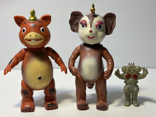 【詳細】イヌクマ☆チャメゴン☆快獣ブースカ☆ソフビ人形 22.5cm JAPAN 当時 版権有 円谷プロ 現状