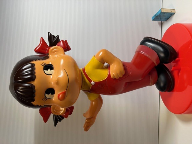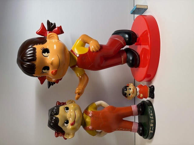 ※一緒に写っている首ふりペコちゃんと、小さなペコちゃんのソフビは、大きさの比較の為のものですので、セットでのお渡しはできません。ご了承下さい。