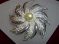 【詳細】アメリカ ヴィンテージ コスチュームジュエリー サラ・コヴェントリーのブローチです。C.SARAHCOVの刻印有り。フェイクパールとの組み合わせがエレガントな1品です。